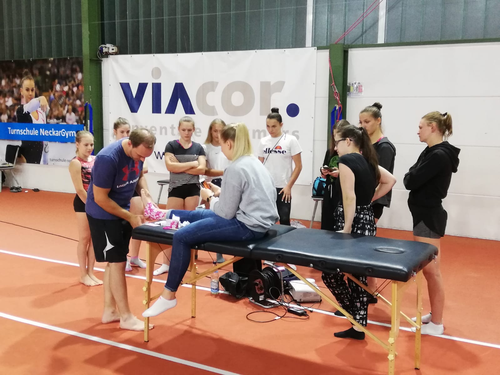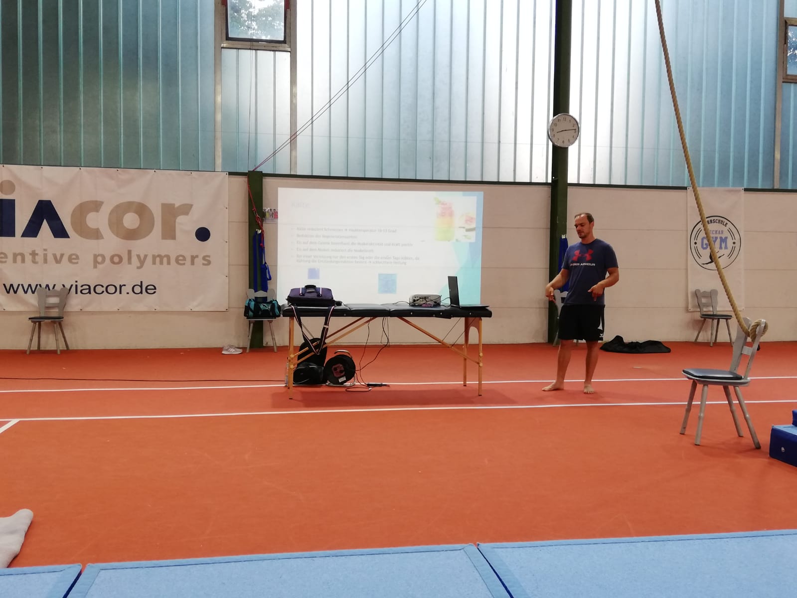 Am 14.08.2020 haben die Turnerinnen und Trainerinnen an einem Vortrag über Regeneration während des Trainingsbetriebs und Erstversogung von Verletzungen teilgenommen. Das Wissen wurde durch ihren Physiotherapeut zuerst theoretisch und danach praktisch vermittelt. Die Inhalte waren unter anderem die Applikationen von thermischen Reizen, Grundlagen der Flüssigkeitszufuhr, einfachen Tapeanlagen und einige weiteren Themen.
