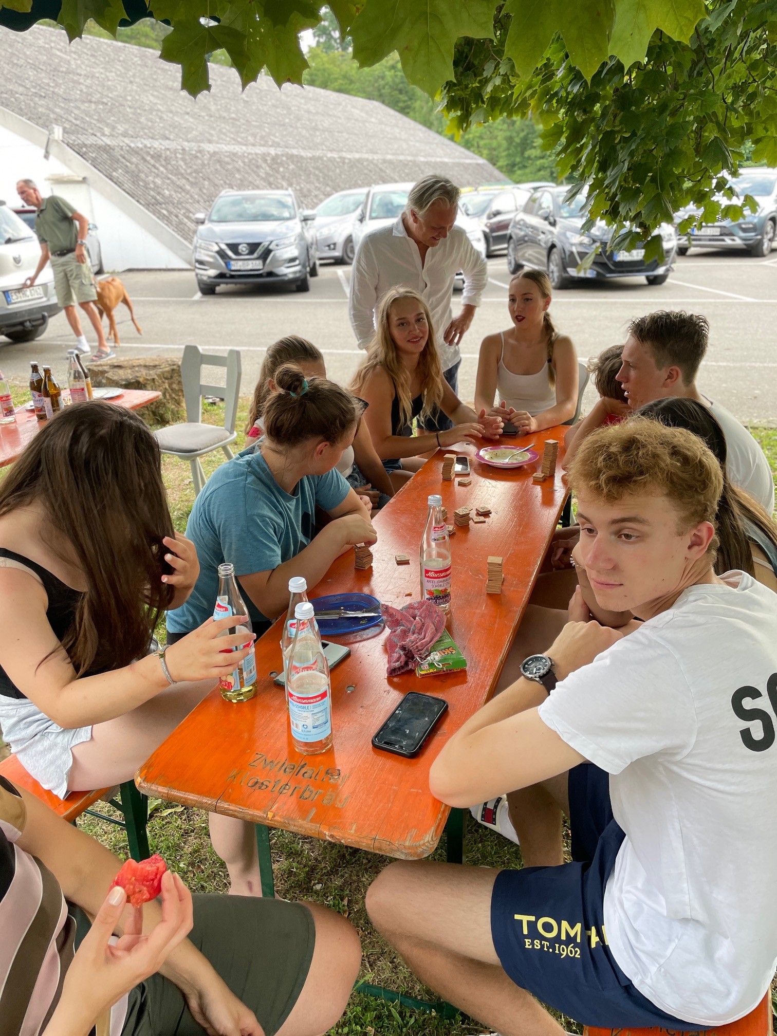 Am nächsten Morgen gab es dann um 8 Uhr ein leckeres Frühstück auf der Terrasse der Pizzeria. Dafür hatten die Turnerinnen Marmeladen, Käse, Wurst, Joghurt, Obst und Gemüse mitgebracht. Der Jugendvorstand hatte extra Brötchen und andere Backwaren am Morgen organisiert. Danach wurde das Geschirr gespült und dann ging es auch schon zum gemeinsamen Training.