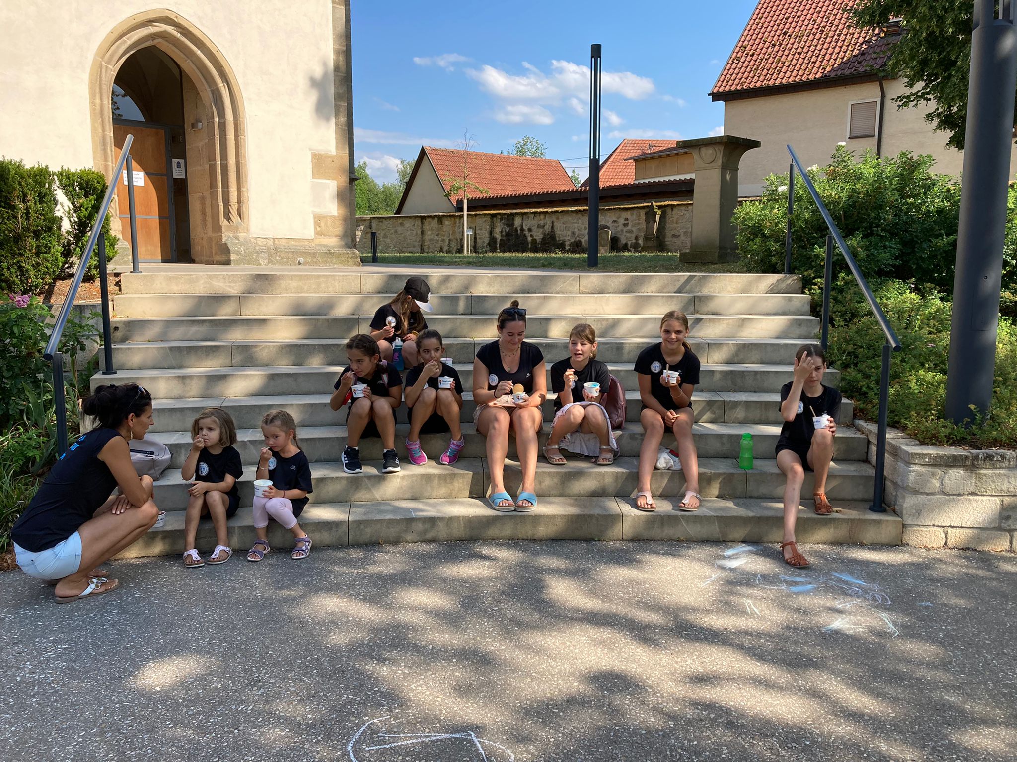 Die Turnschule NeckarGym Nürtingen e.V. feierte am letzten Schultag, 27.7.2022 den Sommerabschluss der Kleinsten. Die Trainer und die Jugendleitung liefen gemeinsam mit knapp 40 Kindern zur Eisdiele Adria nach Neckartenzlingen und verputzen 55 Kugeln Eis bei schönstem Wetter. Ein gemeinsamer Abschluss auf dem Spielplatz rundete diesen schönen Ausflug ab.