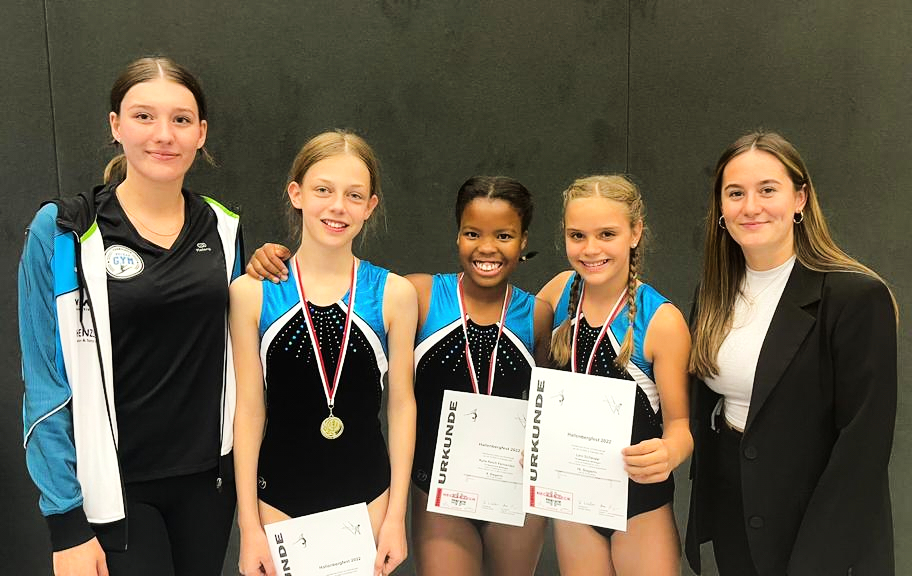 Ab 16:00 zeigten die älteren Turnerinnen Leni, Jana und Kylie ihre Talente. Mit starken 50,7 Punkten erkämpfte sich Leni Schaupp den 16 Platz unter den elfjährigen Athletinnen. Jana Lüssow und Kylie Reich Fernandez trennen am Ende nur 1,45 Punkte, für Jana bedeutete das mit 53,45 Punkten Platz 5, Kylie erturnte sich mit 51,9 Punkten den 9 Platz.
